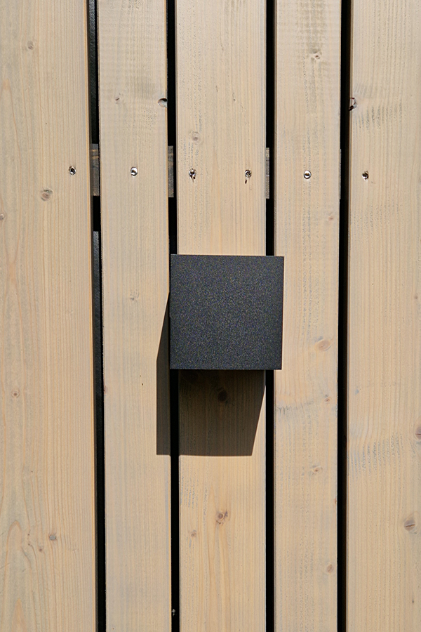- Die Besonderheit des Gebäudes ist die mehrfache Nutzung der Holzkonstruktion. Diese sichtbare Rasterkonstruktion ist das Tragwerk des Gebäudes, die Konstruktion für die Dachfläche, die Rahmenkonstruktion für die Holz-Alu-Glasfassade und die Innenwandkonstruktion für die Raumaufteilung. Die gesamte Holzkonstruktion ist mit unsichtbaren Verbindungssystemen aus traditionellen Schwalbenschwanzverbindungen kombiniert mit modernen Verbindungssystemen realisiert worden. Nach außen prägen die Glaswände und raumhohen Fenster die Transparenz des Gebäudes.