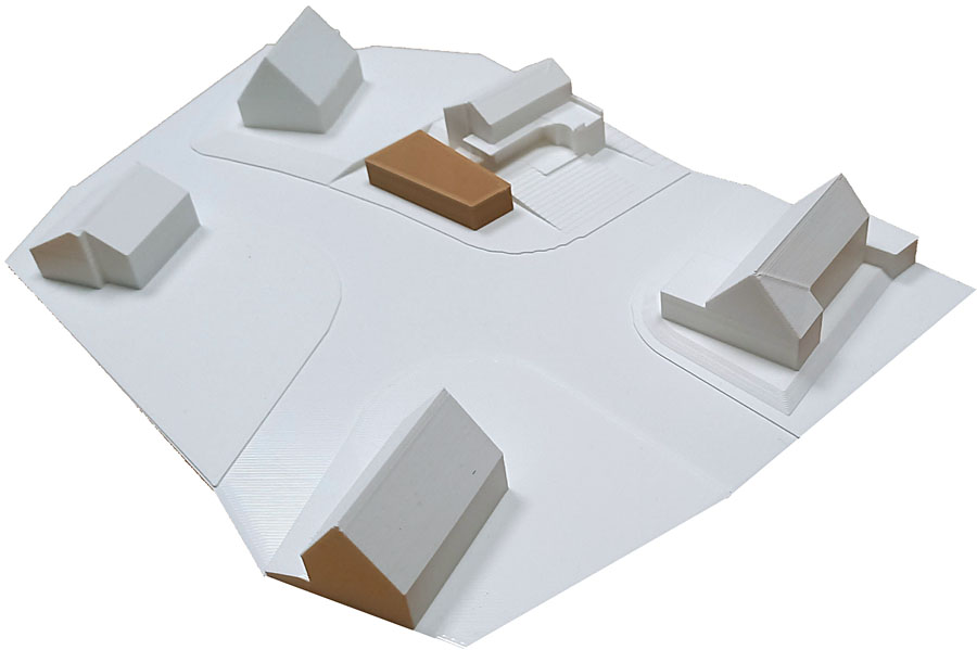 Während der Sohn mit seiner Familie das bestehende Haus bewohnt, bietet der Neubau den Eltern ein neues, kompaktes Zuhause – barrierearm, nachhaltig und zeitgemäß gestaltet.Erweiterungsbau im Holzbauweise mit Eingangsbereich, Ausstellungsbereich und Büro.- und Besprechnungsräumen - Video des Gebäudes